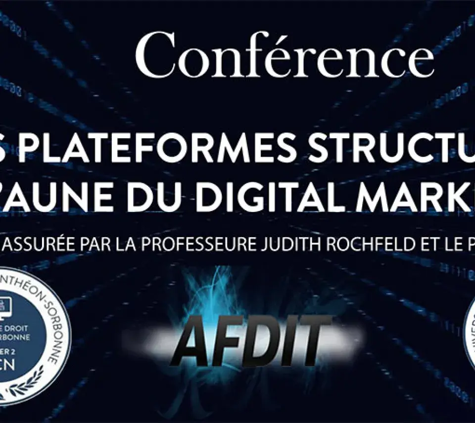 Conférence Image de couverture Le jeudi 21 janvier 2021 17h00 19h00 Les plateformes structurantes à l'aune du digital markets act Ajouter à mon calendrier